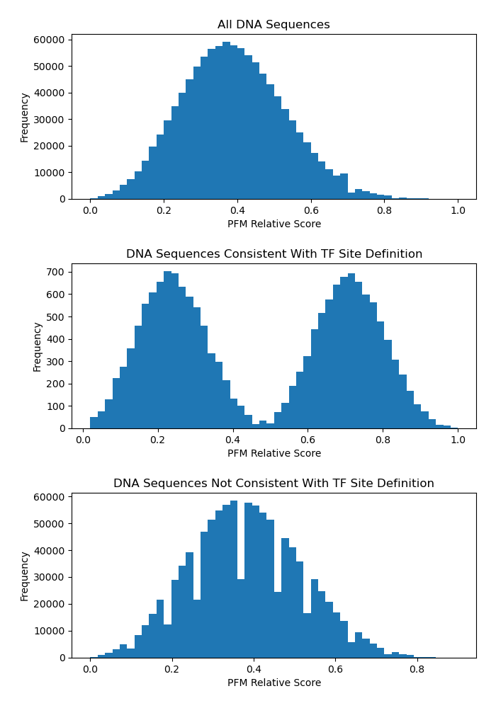 uses the Position Frequency Matrix (PFM) from JASPAR for a transcription factor of interest to score k-mers. The k-mer with the maximum score that conforms to the IUPAC definition of a binding site is normalized to 1.0 and all other k-mers are normalized relative to that score. For example, a normalized value of 0.1 is 10% of the maximum score.
